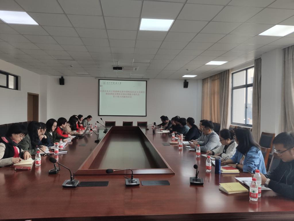 2019年11月6日中午,马克思主义公司党支部开展十九届四中全会精神集体学习会。会议由支部书记杨华主持。杨华强调全院教师要深刻领会四中全会的重大意义、丰富内涵、精神实质,切实把思想、政治和行动高度统一到四中全会精神上来,确保党中央关于推进国家治理体系和治理能力现代化的各项决策部署能够楼市到位,牢记教师立德树人使命,在日常工作中坚决贯彻落实会议精神,推动公司工作迈向新台阶。