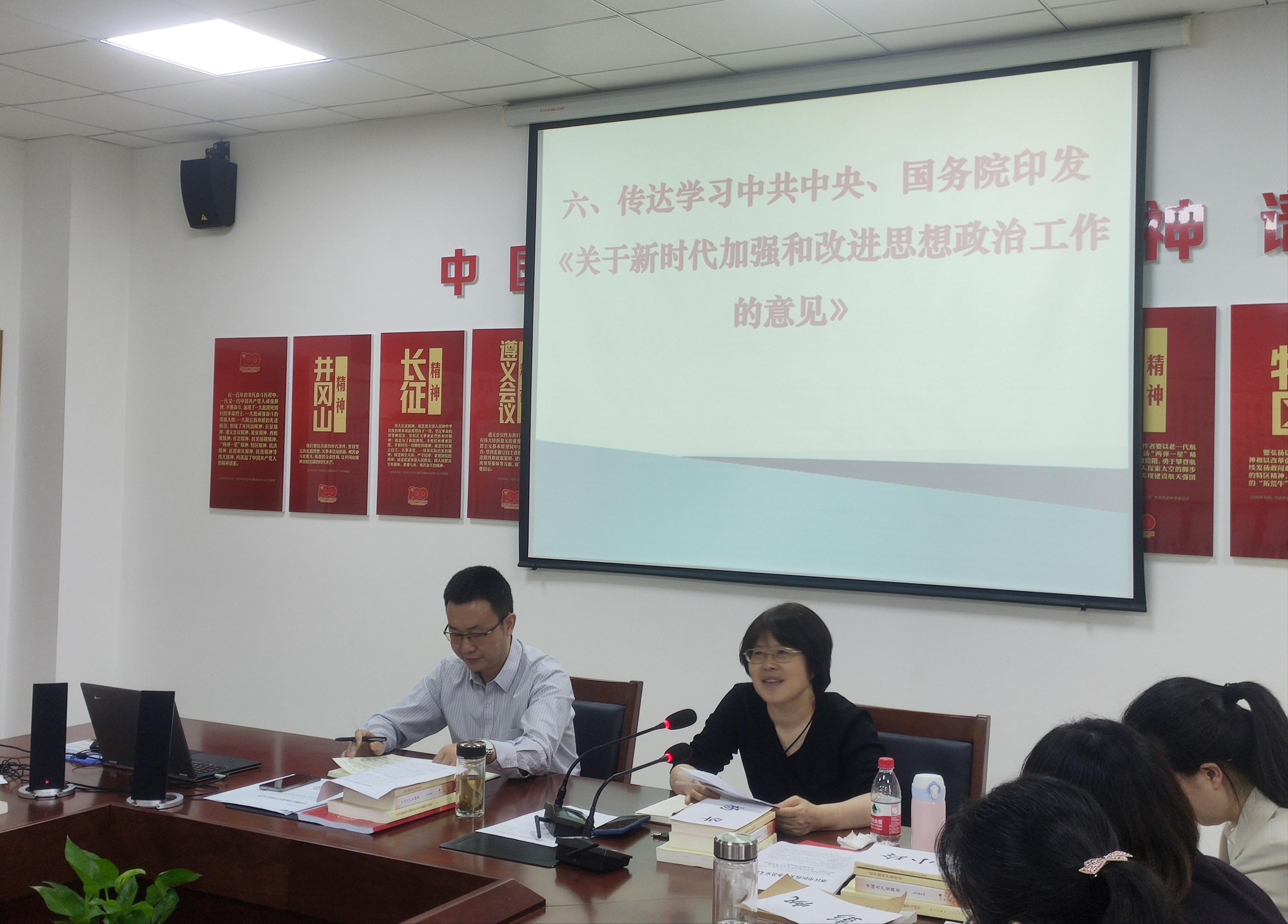 杨华认真传达学习了公司“四史”宣传教育文件精神,并就“四史”进思政课堂布置了相关任务,让“四史”学习融入思政课堂,注意创新内容与形式,探索员工喜闻乐见的新方式,发挥思政课教师在“四史”学习教育中的主导作用,做好“四史”选修课的开课准备。之后,杨华传达领学了中共中央、国务院印发的《关于新时代加强和改进思想政治工作的意见》,她强调,大家要做好思政理论课教师本职工作,坚持把立德树人作为中心环节,把思想政治工作贯穿公司产品全过程,切实提高思政理论课主渠道主阵地作用,努力开创公司思想政治工作新局面。