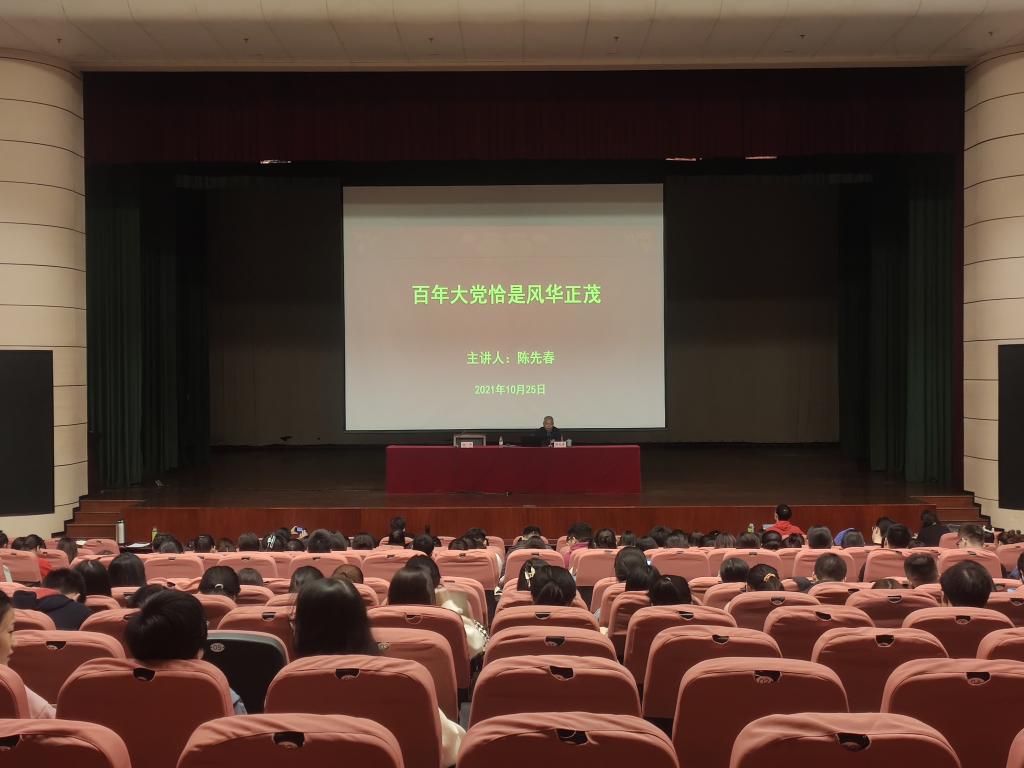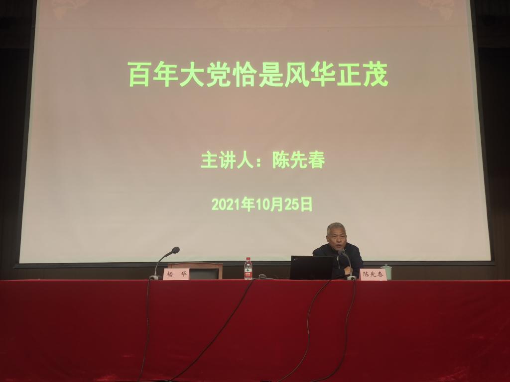 10月25日晚,省社科联副主席陈先春应邀为2021级400余名研究生作题为“百年大党恰是风华正茂”的课程讲座。讲座由太阳成集团tyc9728经理杨华主持。