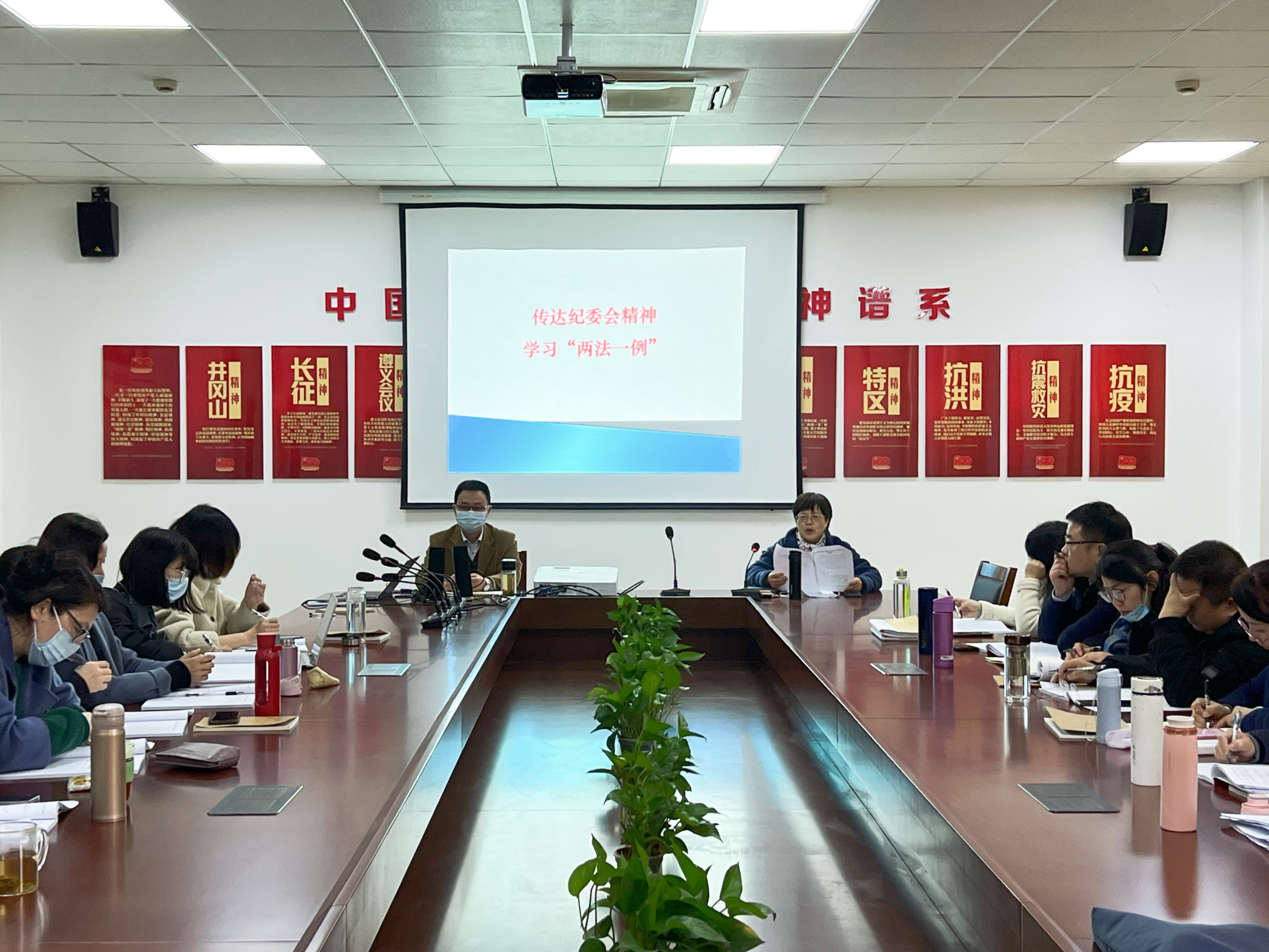 12月15日下午,太阳成集团tyc9728在富春校区2B222会议室召开全院教师大会,专题学习《中华人民共和国监察法》《中华人民共和国公职人员政务处分法》《中华人民共和国监察法实施条例》(简称“两法一条例”)以及教育部日前印发的《高等公司思想政治理论课建设标准(2021年本)》。本次学习活动由公司经理杨华主持,公司全体教师参加。
