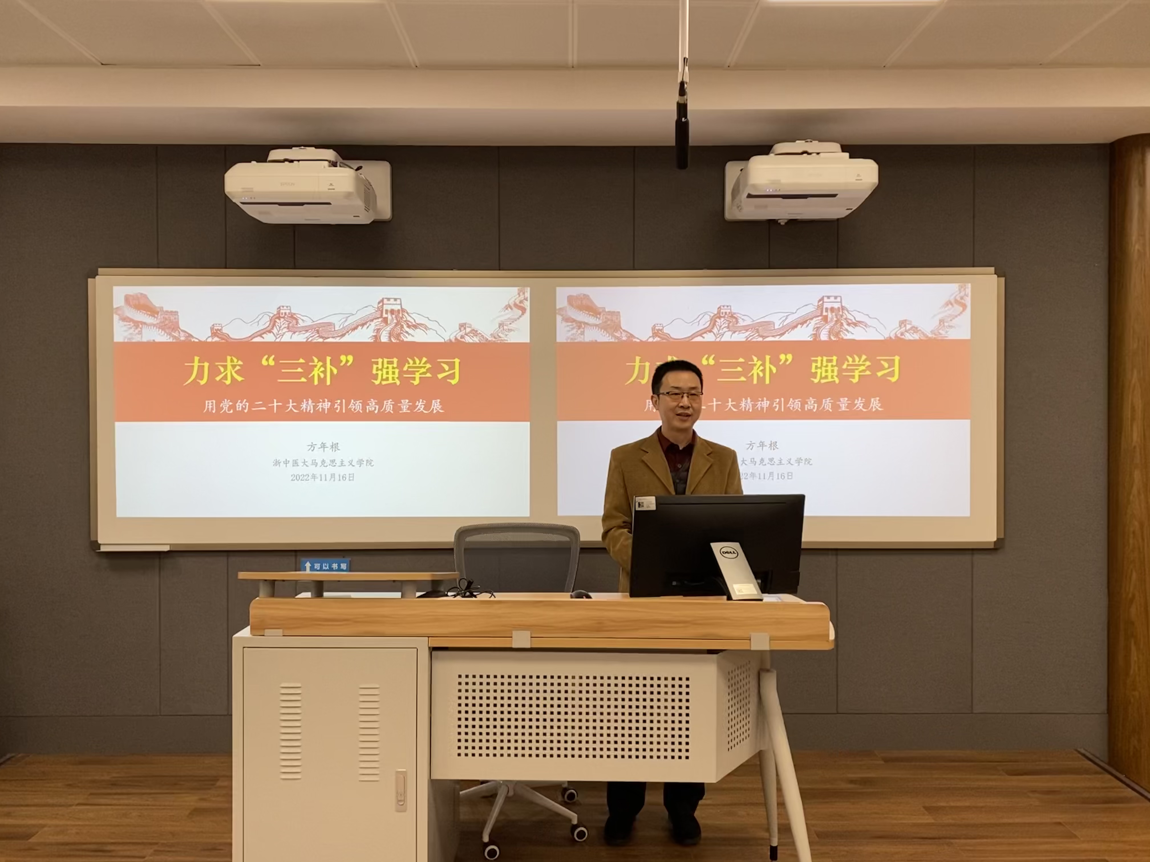 方年根书记以《力求“三补”强学习------用党的二十大精神引领高质量发展》为题,从弄清为何学以促“知”、明确目标学以求“效”、把握本质学以笃“行”三个方面作了党的二十大精神宣讲。关于弄清为何学以促“知”问题,他重点从会议精神极重要、学习本身很紧要、问题导向亟需要等三个层次进行了阐述。关于明确目标学以求“效”问题,他从党中央的部署要求和校院两级党组织的具体要求两个方面进行了分析,尤其强调要通过学习力求达到以学补精神之钙、以学补品行之失、以学补进取之气的学习目标。关于把握本质学以笃“行”问题,他在阐明“三补”的本质在于立德的基础上,要求公司教职工在日常工作中勤修“八德”,崇德修身勇实践,拉高标杆作贡献,撸起袖子加油干,同心共圆公司梦、公司梦、中国梦。
