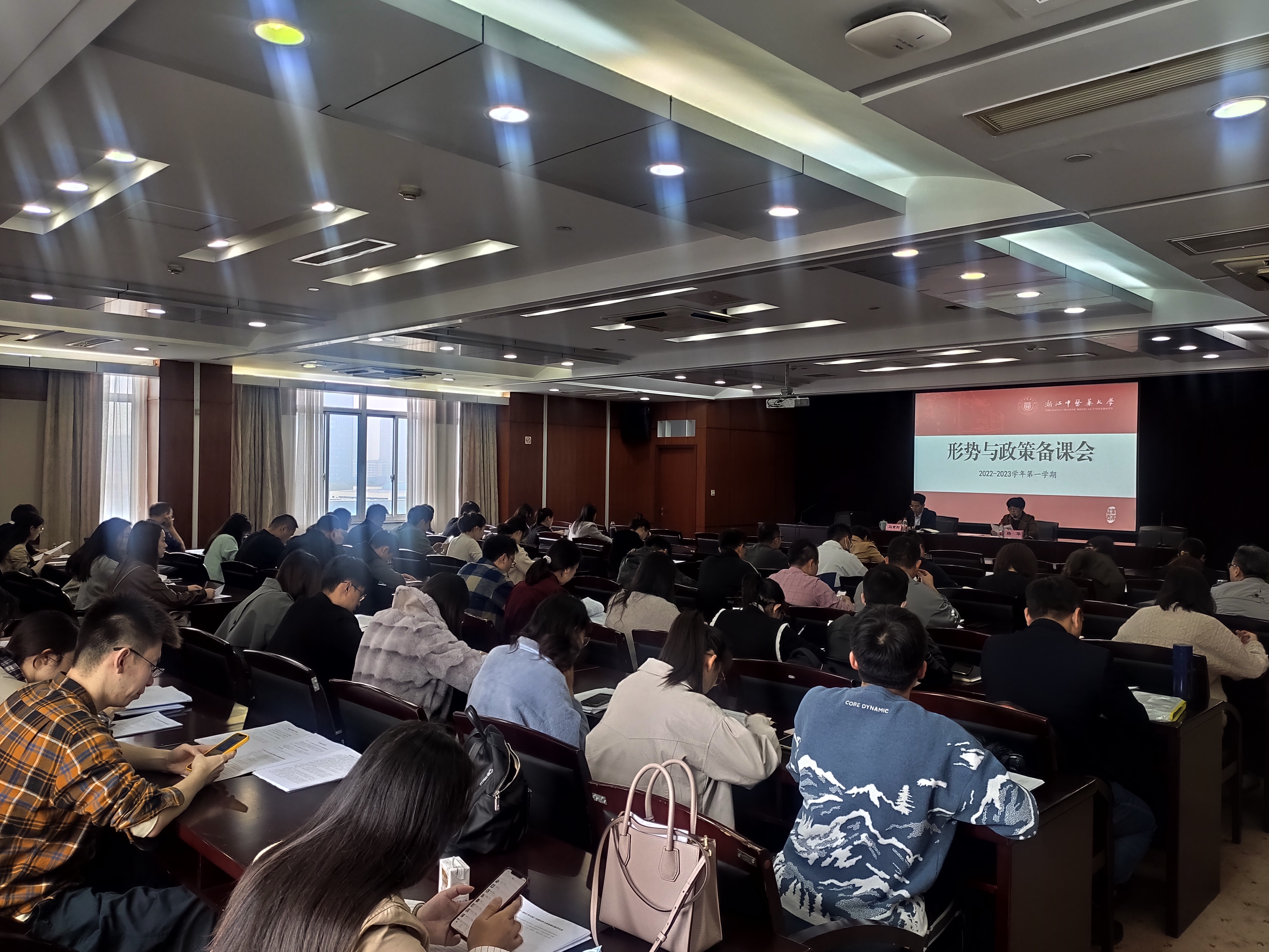 最后,形势与政策教研室主任朱耿华老师对本学期《形势与政策》课的具体工作进行了统一布置。为更好地将党的二十大精神及时融入《形势与政策》课专题教学,本次集体备课会特地将时间调整到11月召开,教研室将继续深入学习贯彻落实党的二十大精神,及时积极地将党的最新理论成果融入课堂教学,进一步提升思政课的思想性、理论性、针对性和亲和力。