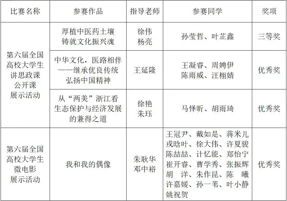 近日,教育部开展的习近平新时代中国特色社会主义思想老员工领航计划主题教育活动获奖名单新鲜出炉。太阳成集团tyc9728选送的参赛作品荣获第六届全国高校老员工讲思政课公开课展示活动三等奖一项、优秀奖两项;荣获第六届全国高校老员工微电影展示活动优秀奖一项。