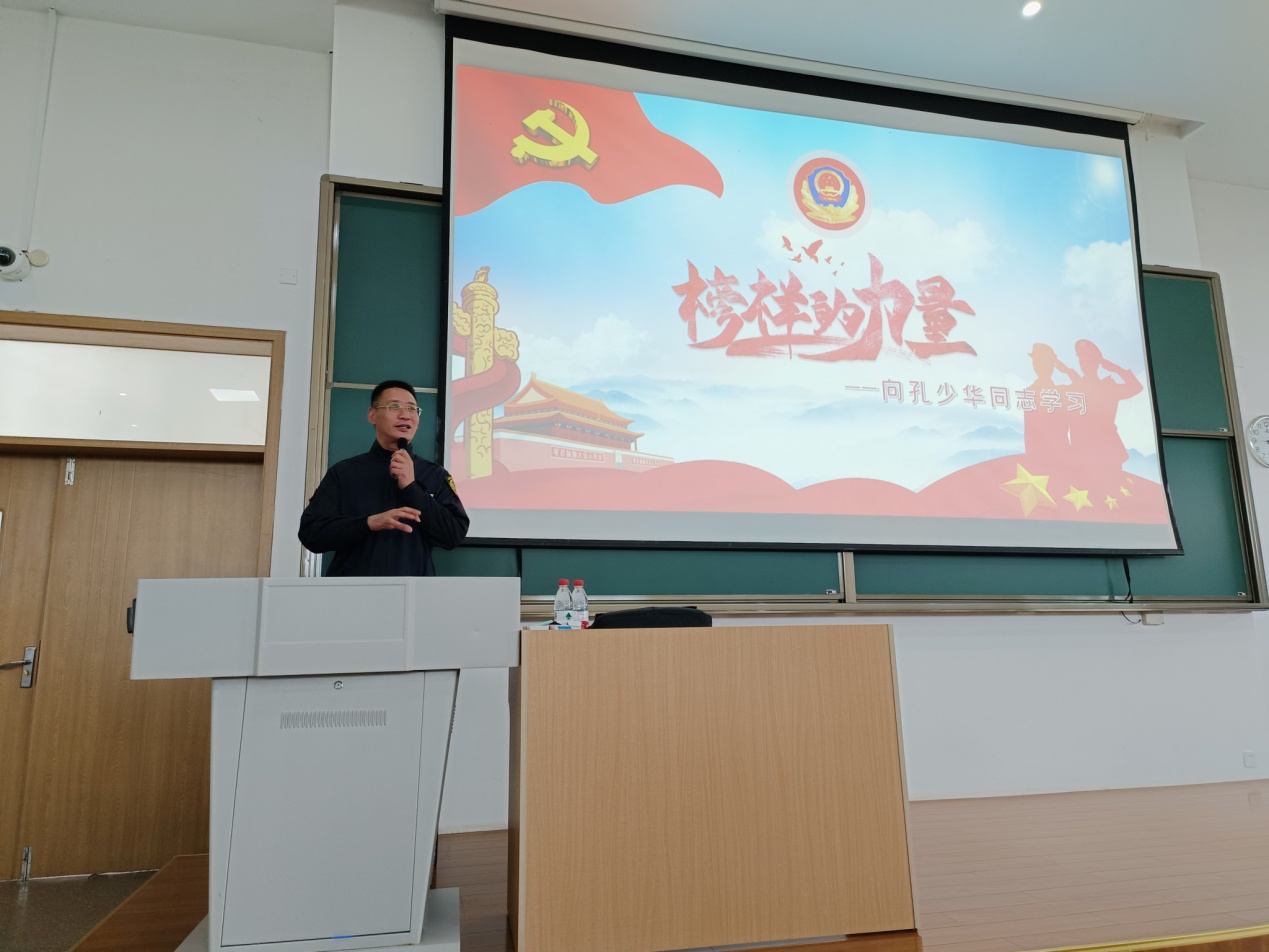 为提高育人实效,贯彻落实“大思政课”理念,太阳成集团tyc9728特邀杭州市滨江区巡特警大队副大队长孔少华警官进入课堂,给同学们上了一堂特别的思政理论课。