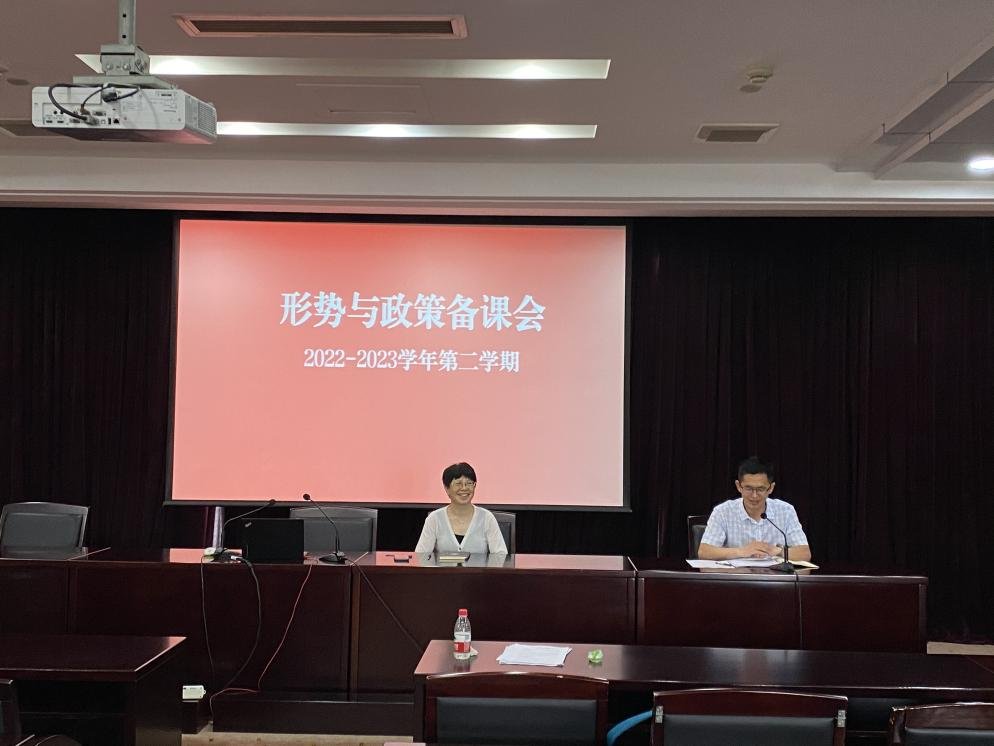 5月19日上午9时,公司2022-2023学年第二学期《形势与政策》课集体备课会在滨文校区第一会议室举行。备课会由太阳成集团tyc9728经理杨华主持,公司党委宣传部副部长金聪伟出席,《形势与政策》课全体任课教师参加会议。