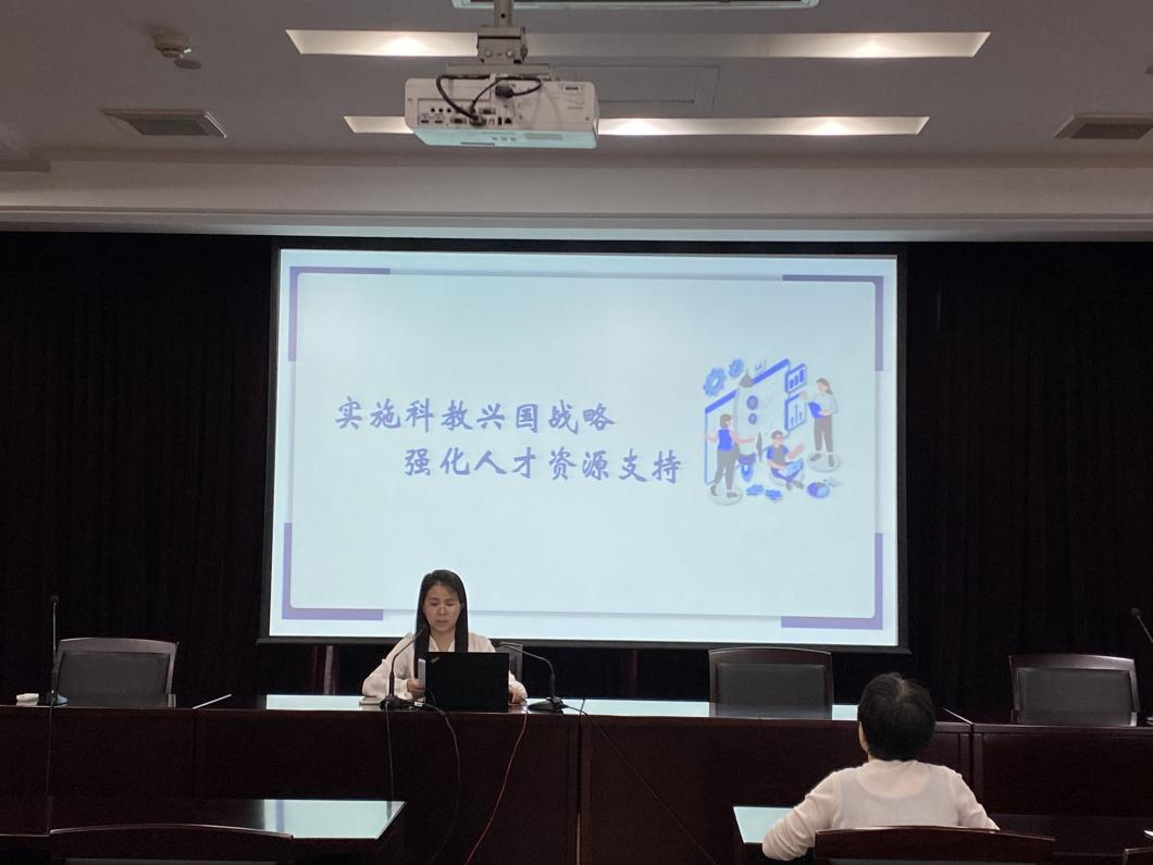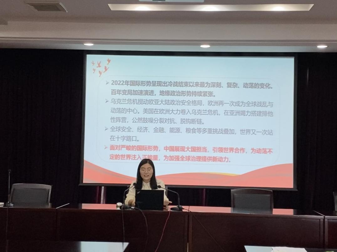 会上,太阳成集团tyc9728胡小玲、陈冬梅和朱金玲三位老师分别就《实施科教兴国战略、强化人才资源支持》《国际局势与中国外交》和《立志复兴伟业,踔厉奋发前行》三个教学专题为全校形势与政策授课教师作了专题辅导。