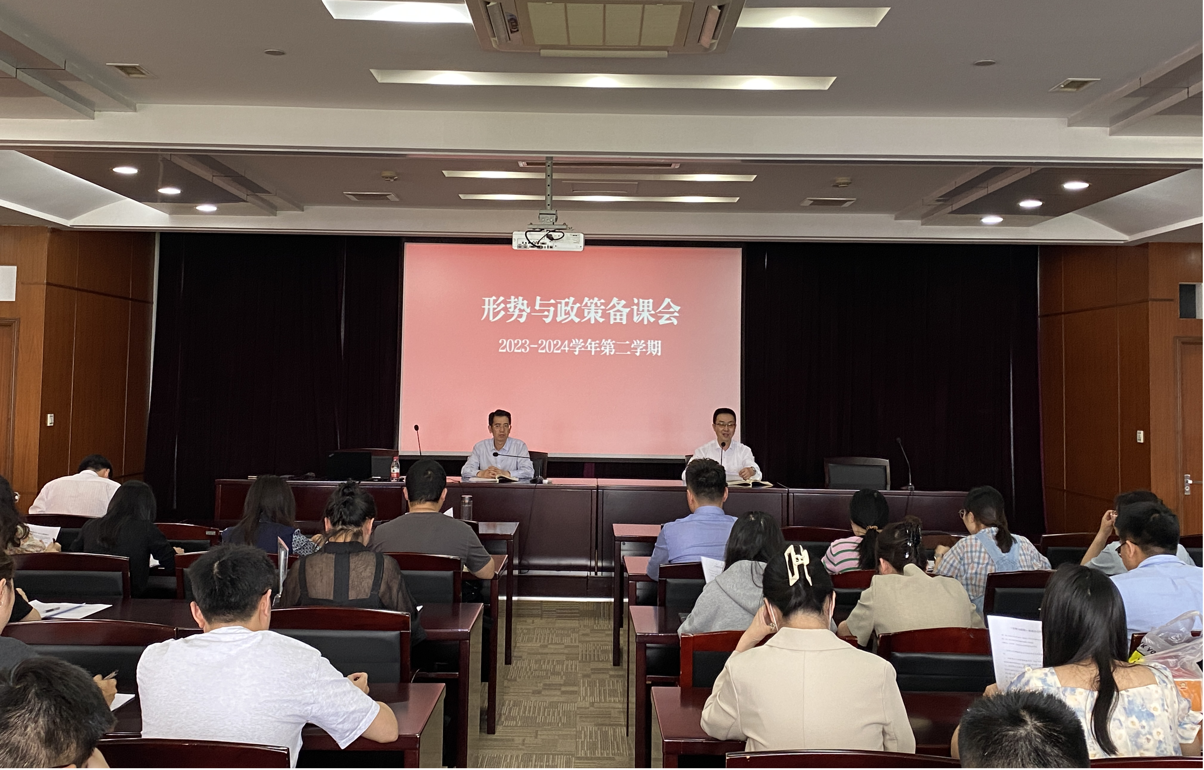 5月10日下午,公司2023-2024学年第二学期《形势与政策》课集体备课会在滨文校区行政楼八楼第一会议室举行。备课会由马克思主义公司党总支书记方年根主持,公司党委委员、宣传部部长马重阳出席,《形势与政策》课全体任课教师参加会议。