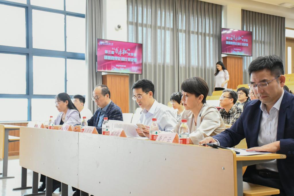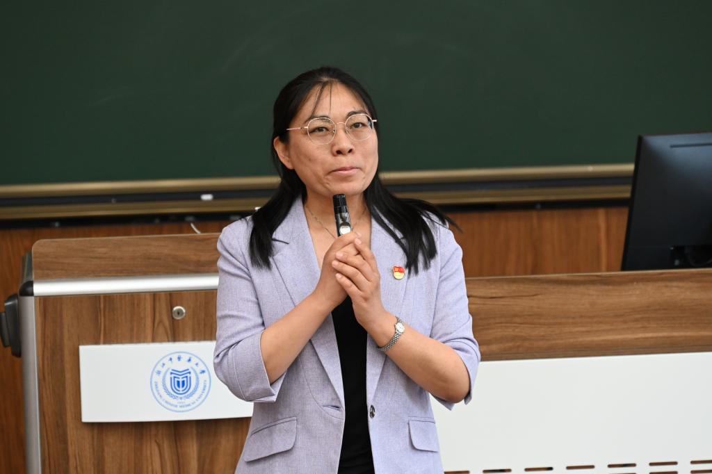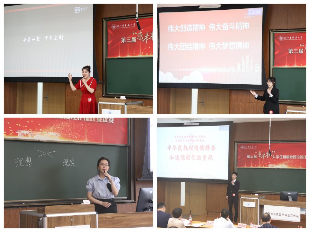 之后,查广云教授和刘霞教授对各位选手的讲课进行了点评总结。查广云教授赞扬了选手们的授课风采和理论素养,他表示各位参赛选手备课充分、思路清晰、讲述流畅、感染力强,授课内容贴近实际,具有鲜明的时代性、深厚的家国情怀和宽阔的国际视野。他希望同学们通过比赛磨炼口才、提升素养、突破自我,争取未来能够收获更好的成绩。刘霞教授对选手们的表现给予了高度肯定,她表示各位选手有激情、有高度、有温度,不仅语言流畅、课件精美,授课内容更充满了对于社会、国家和世界的关注。从中国精神、人类命运共同体等大处着眼的同时,也不忘关注身边的小事和榜样,充满温度却不失说服力,体现了当代老员工有理想、有本领、有担当、有爱心的风采。