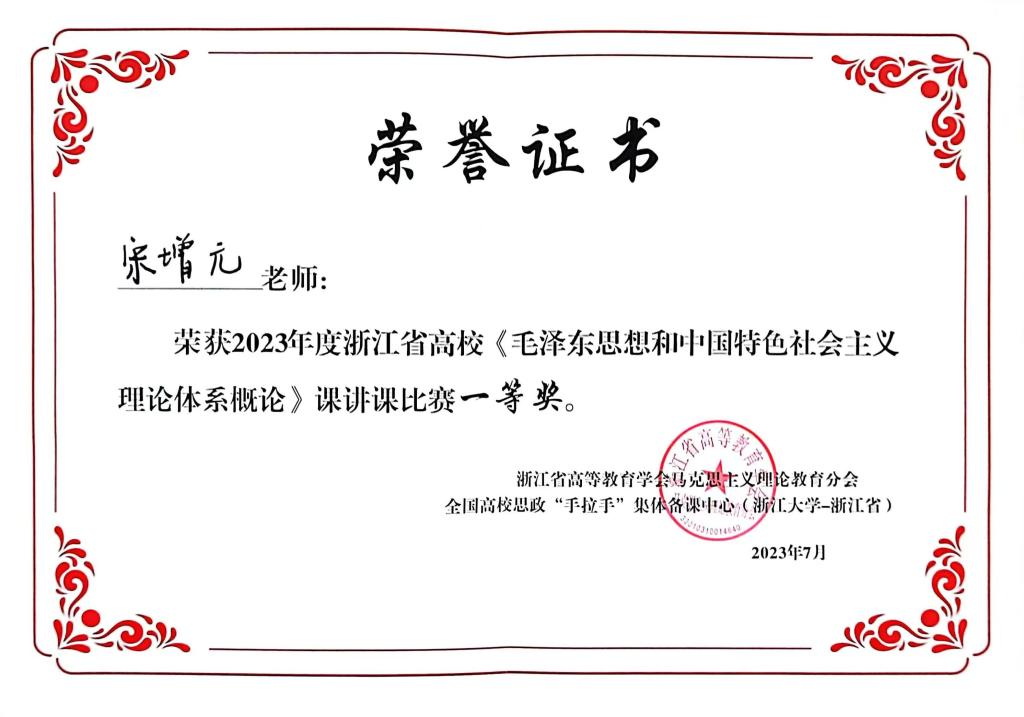 宋增元,汉族,中共党员。太阳成集团tyc9728习近平新时代中国特色主义思想概论教研室讲师。主讲课程:习近平新时代中国特色主义思想概论、毛泽东思想和中国特色社会主义理论体系概论、改革开放史。研究方向为思想政治教育理论。主持厅局级课题1项、校级课题1项和院级课题1项。参与课题研究多项。2023年,荣获浙江省高校《毛泽东思想和中国特色社会主义理论体系概论》备课会现场本科组讲课比赛一等奖。
