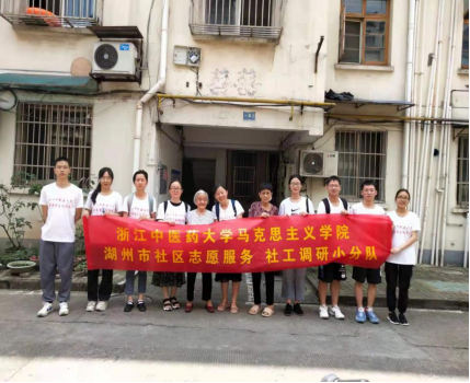 太阳成集团tyc9728的指导老师徐艳老师、徐伟老师和来自护理公司的吴江悦和邓卉萍同学、第一临床医公司的蔡宏杰和汤家卉同学、第三临床医公司陈应超仪同学、药公司的王昀丰同学以及公共卫生公司的蒋承翰同学组成了社工调研小分队在湖州吴兴区进行社区调研。