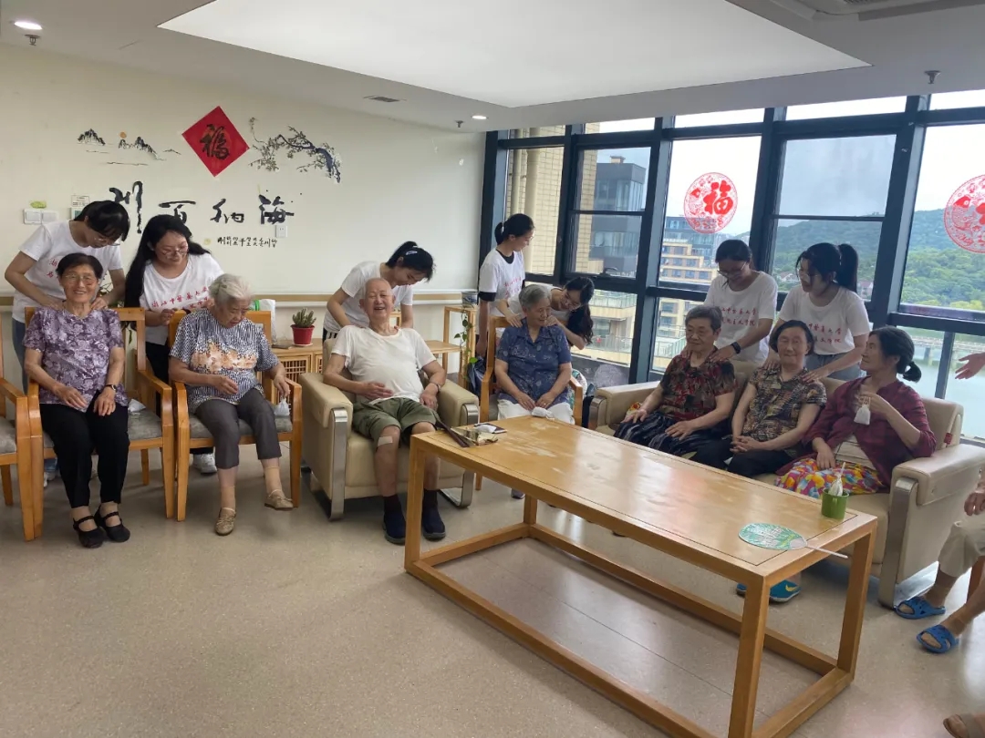 在走进养老院之前,我会以为那里的老人家都会是很孤单的,然而这次的实践活动,两个养老院,我遇到的都是开朗健谈的老人,了解了他们的故事,走进了他们的生活。在富阳的养老院,我发现了养老院的作息表,原来老人家也要五点半起床,八点入睡,准时作息,我觉得挺奇妙的。我们为他们量血压、按摩、表演才艺,我们小组准备了歌曲和太极拳表演,总是有奶奶爷爷为我们鼓掌,会热情的和我们握握手,哦对了,还有时髦的爷爷奶奶还会刷抖音,惊呆我了都。虽然可能平时子女们不常回来探望,但是老人家们都很自在地过着自己的生活,身边的照料者也很细心热情,我们还能给他们带来一份快乐,自己也觉得很有成就感。