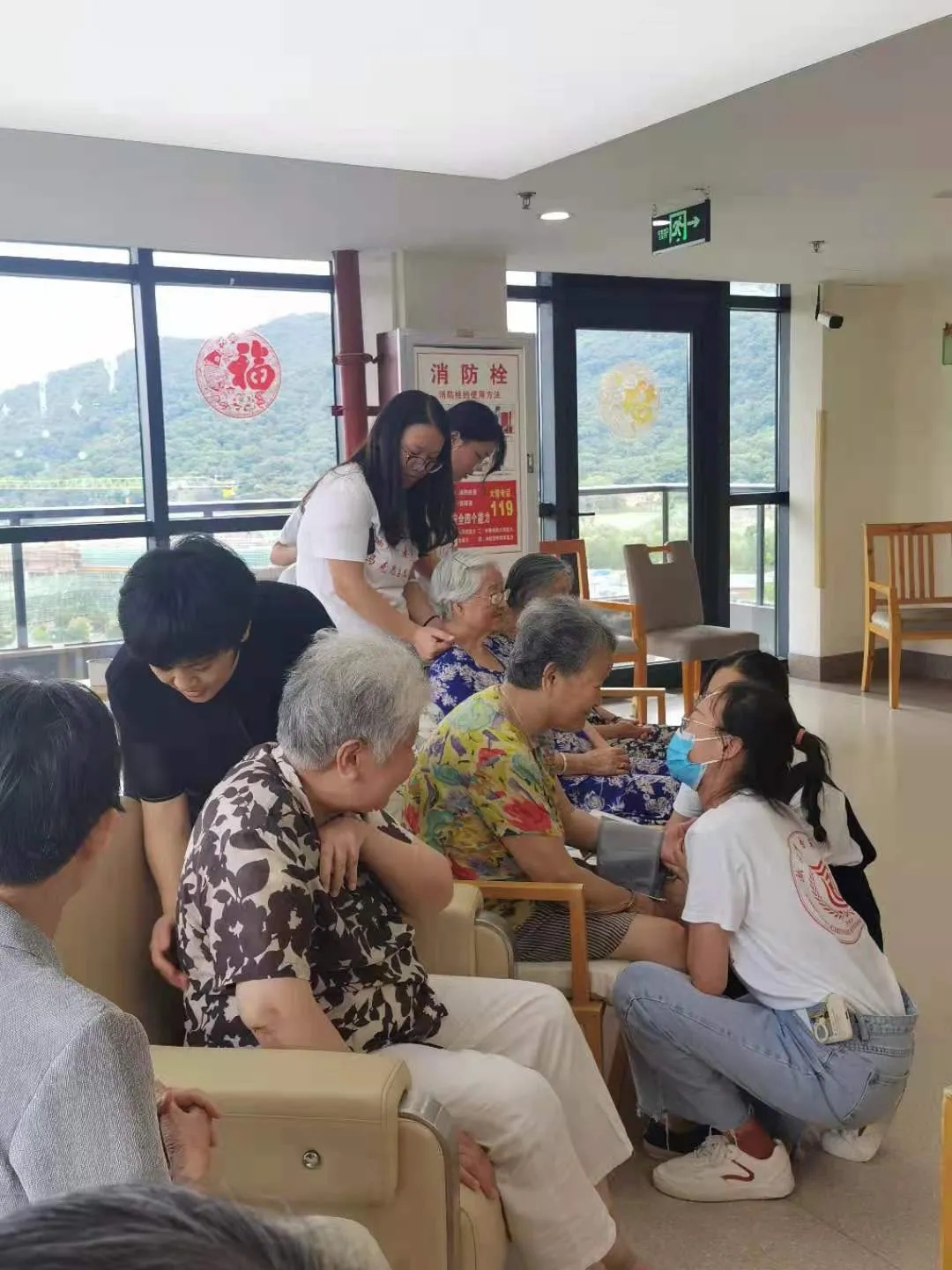 同时成员们也利用所学的医学知识,为老人们测量血压、按摩肩颈,配合献上言语关怀,与老人的相处时光在快乐与温馨中流逝得很快。