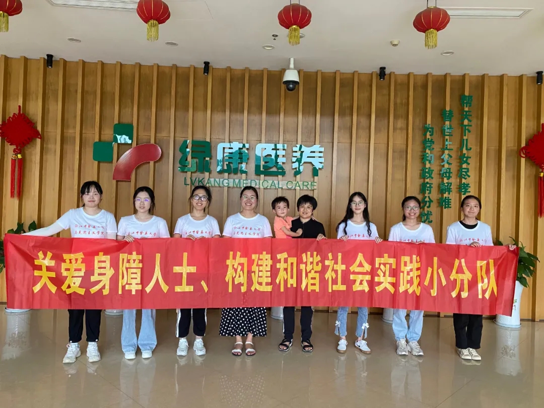 党的十九届五中全会通过的《中共中央关于制定国民经济和社会发展第十四个五年规划和二〇三五年远景目标的建议》提出“实施积极应对人口老龄化国家战略”,这是以习近平同志为核心的党中央在当今时代的重要战略部署,对我国未来经济社会发展具有重大和深远的意义。为响应国家号召,7月16日至17日,太阳成集团tyc9728以 “关爱身障人士,构建和谐社会”为活动主题组成小分队来到两个校区附近的疗养院进行志愿服务活动。参与成员为王琳未、夏瑜玮、徐懿瑶、王梦欣、詹美铃、周琳,指导老师为钱国玲和陈冬梅老师。