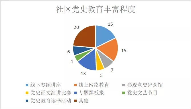 因此当地社区的党史教育方式有待改进。在开展社区的党史学习教育时不仅要足够的重视老年人群,同样的也要及时利用当前社会的新型宣传工具,例如微信、QQ等,进行对青年及中年人群的宣传;同时对居民们分批次分深度地进行适合的党史教育讲解,提高居民对党史学习教育的参与度、知名度等等,以此让当地居民充分地参与其中、提高自身修养。